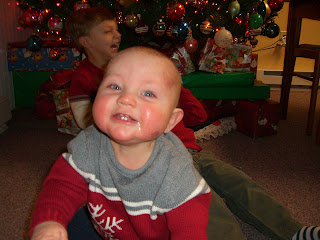 So yesterday I took the boys to Mom's to try to take some Christmas pictures - "try" being the operative word. Between Mom and me dozens of photos were taken, yet not one was good enough for the Christmas card. I guess we'll try again this week at home. I was hoping to get the cards done before Christmas this year, but we'll just have to wait and see.